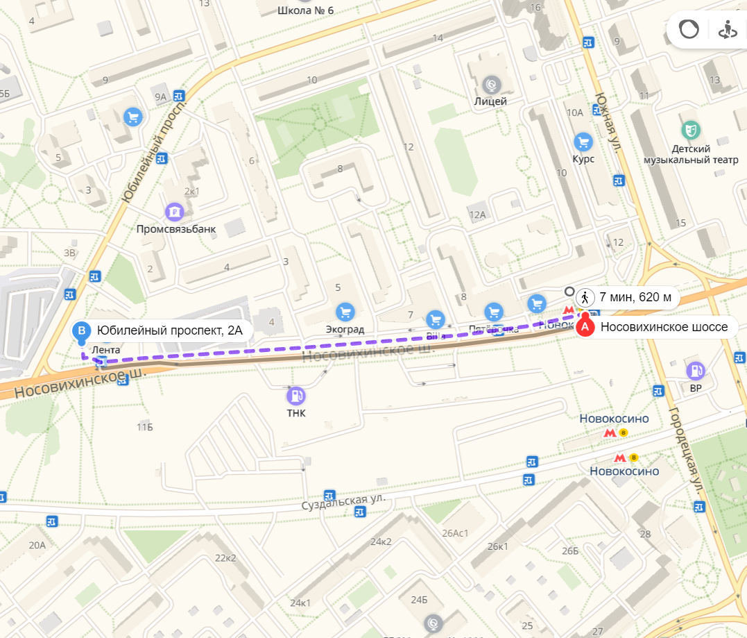 Юбилейный проспект, д.61 Пешком: от метро "Новокосино" первый вагон из центра. Транспортом: от метро "Новокосино" первый или последний вагон из центра в сторону области до остановки "Юбилейный проспект, 66": Маршрутка 3, 1226к, 1138, 1149 Автобус 142а